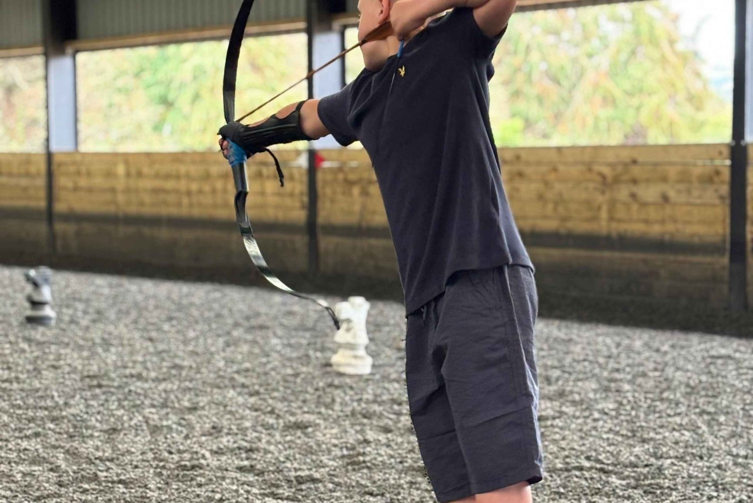 Discover the thrill of horseback-style archery on foot. Join a qualified Intermediate BHAA Coach at Currypool Equestrian and learn the art of instinctive shooting inspired by mounted archery traditions — all in a safe, fun, and supportive environment. Start on foot, developing key techniques used by horseback archers, before moving on to a wooden horse, where you can practice balance, rhythm, and timing just like a mounted archer — no real horse required. Throughout the session, take part in skills, drills, and archery games, designed to build confidence and accuracy while keeping things light-hearted and enjoyable. Perfect for beginners and experienced archers alike, this unique activity helps improve focus, coordination, and body awareness, while offering a taste of the dynamic world of horseback archery.Includes